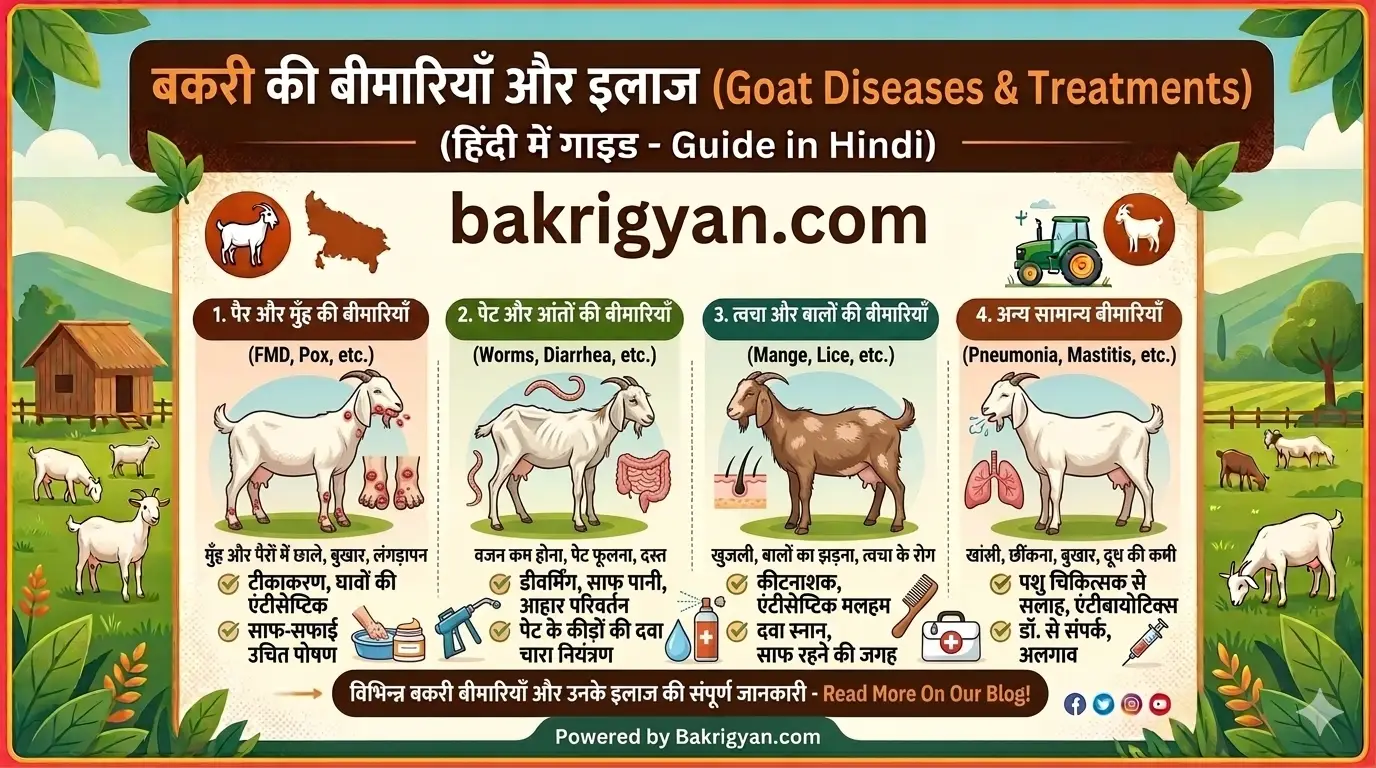 बकरी पालन एक लाभदायक व्यवसाय है, लेकिन कई बार बकरियां बीमार हो जाती हैं जिससे किसानों को नुकसान हो सकता है। अगर बीमारी को समय पर पहचान लिया जाए और सही इलाज किया जाए तो बकरियों को जल्दी ठीक किया जा सकता है।